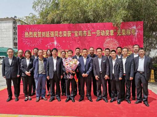 4月30日,寶雞市勞動者之歌暨慶?!拔逡弧眹H勞動節(jié)大會勝利召開,公司劉延強同志被授予“寶雞市五一勞動獎章”光榮稱號,公司在總部辦公樓前舉行了簡樸隆重的歡迎儀式。公司副董事長、總經(jīng)理胥立,黨委書記景旭東,工會主席王建成等出席儀式,總部全體、寶雞文化藝術中心項目部管理人員參加。