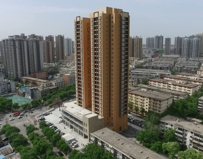 本工程位于咸陽市文匯東路6號,西藏民族大學(xué)校區(qū)內(nèi),南臨文匯東路主干道,西臨新興北路,交通便利。本工程地下1層,地上27層,1-3層為商業(yè)用房,4-27層為住宅,共計(jì)240戶。建筑總高度86.25m,建筑面積26176㎡,其中地下一層2378㎡,1-3層裙房5093㎡,人防面積852㎡。建筑和安裝工程造價(jià)約7600萬,決算7100萬。工程投入使用以來,各項(xiàng)功能良好,系統(tǒng)運(yùn)行正常,與周圍環(huán)境相融合,成為西藏民族大學(xué)又一重要建筑,得到校內(nèi)外各界高度評價(jià),用戶非常滿意。