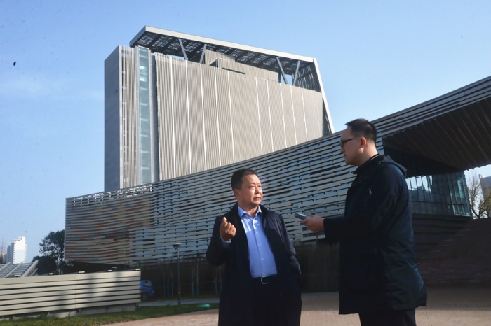 采訪完畢了,董事長(zhǎng)還抬著頭凝視著陽(yáng)光普照下的文化中心。