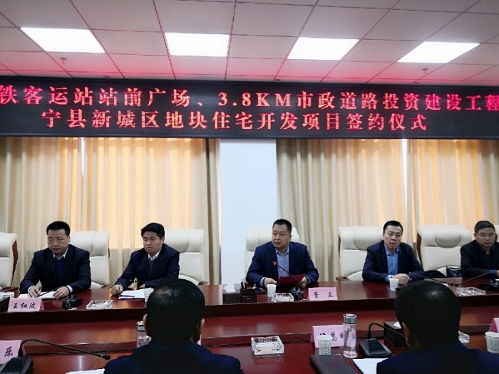 2019年12月4日,寧縣高鐵客運(yùn)站站前廣場(chǎng)、3.8KM市政道路投資建設(shè)工程及寧縣新城區(qū)地塊住宅開發(fā)項(xiàng)目簽約儀式在寧縣人民政府順利舉行。寧縣縣委書記侯昌明,縣委副書記、縣長(zhǎng)李鵬飛,縣委常委、常務(wù)副縣長(zhǎng)杜豐,縣委常委馬應(yīng)樂,發(fā)改局、自然資源局、住建局、商務(wù)局等各部門主要負(fù)責(zé)人出席儀式。公司董事長(zhǎng)胥立、總經(jīng)理張小揚(yáng)、副總經(jīng)理李紅軍、副總經(jīng)理沈?yàn)槊瘛⒏笨偨?jīng)濟(jì)師王紅波出席簽約儀式,相關(guān)部門經(jīng)理和工作人員隨行。