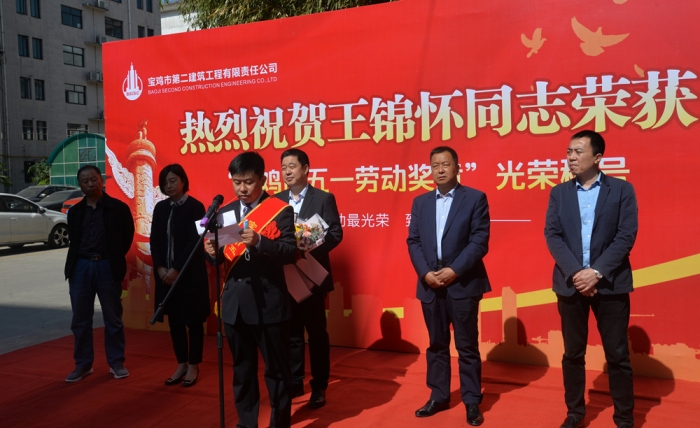 4月27日上午,寶雞市慶祝“五一”國(guó)際勞動(dòng)節(jié)大會(huì)在萬(wàn)福酒店召開(kāi),公司第三十四項(xiàng)目部項(xiàng)目經(jīng)理王錦懷同志榮獲寶雞市“五一勞動(dòng)獎(jiǎng)?wù)隆惫鈽s稱(chēng)號(hào)。公司在總部辦公樓前舉行了歡迎儀式,公司董事長(zhǎng)胥立、總經(jīng)理張小揚(yáng)、黨委書(shū)記景旭東、黨委副書(shū)記王紅衛(wèi)、工會(huì)主席王建成等領(lǐng)導(dǎo)出席,總部全體人員、第三十四項(xiàng)目部員工代表參加。