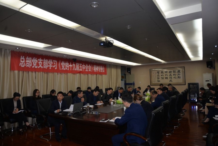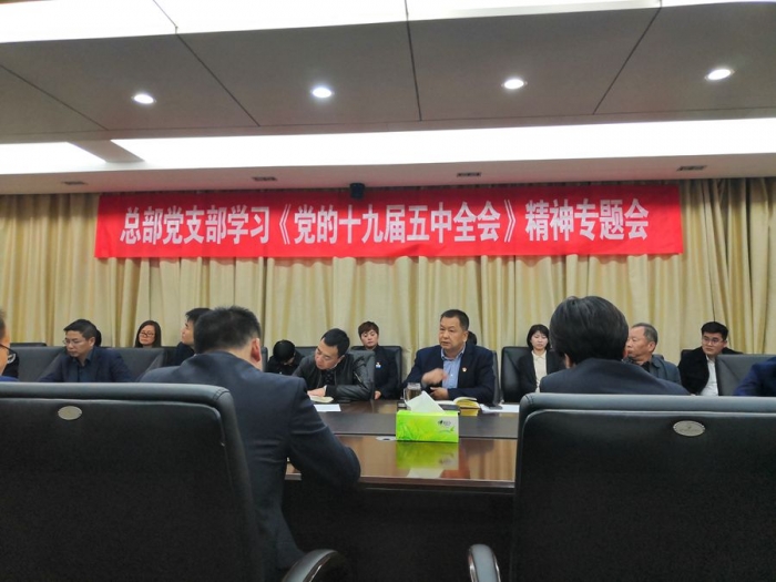 2020年11月10日晚,公司總部黨支部組織召開學習貫徹《黨的十九屆五中全會》精神專題會。公司董事長、黨委書記胥立、班子成員及各部門相關(guān)黨員干部共計30余人參會,會議由總部黨支部書記沈為民主持。
