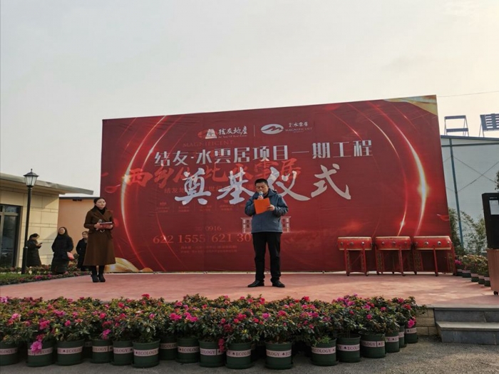 公司總經(jīng)理張小揚、副總經(jīng)理申小龍、總會計師嚴(yán)海軍、市場經(jīng)營部經(jīng)理蘭永輝及西鄉(xiāng)水雲(yún)居項目部全體員工參加開工奠基儀式。