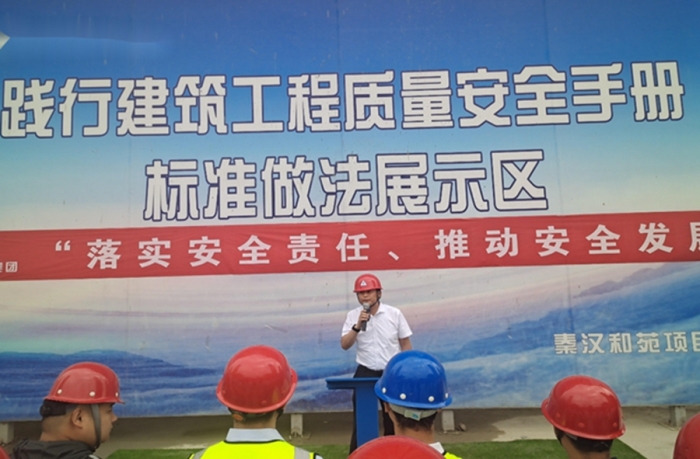 秦漢和苑項(xiàng)目經(jīng)理申宏亮對(duì)項(xiàng)目安全管理作了經(jīng)驗(yàn)交流并對(duì)安全生產(chǎn)做出了鄭重承諾。他提到,現(xiàn)場(chǎng)安全生產(chǎn)不光要明確目標(biāo)、突出重點(diǎn),更要樹立大局意識(shí),認(rèn)清形勢(shì)、狠抓落實(shí)。只有把安全生產(chǎn)工作做細(xì)做好、落到實(shí)處,才能創(chuàng)造一個(gè)安全、有序、和諧的生產(chǎn)環(huán)境。